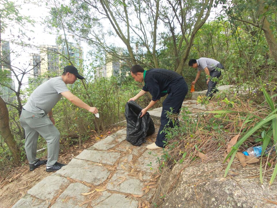 下午14點整,公司全體員工安全抵達指定的集合地點,大家迅速分好組,拿上垃圾袋,便開始繞著南山緩緩而行,沿途環(huán)保。一路上大家有說有笑,有贊嘆風景秀麗的,有吐槽山路太陡的,有比拼撿到款泉水瓶子個數的,不知不覺,我們已經來到了山頂。