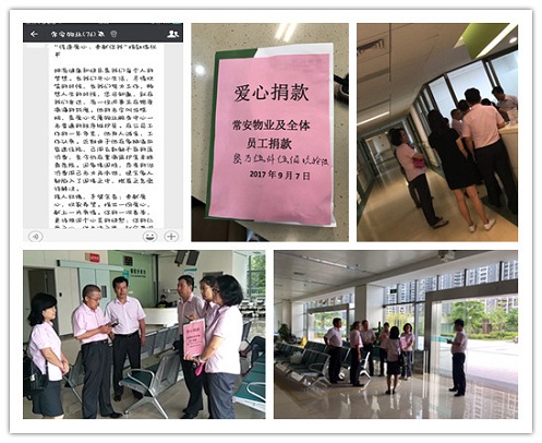公司接到家屬消息后,非常關(guān)心,當(dāng)即安排人員及工會主席前往醫(yī)院探望并送上公司的關(guān)懷及5000元的慰問金。隨即在公司內(nèi)部及時組織全體員工發(fā)起了為龍曉明“傳遞愛心,奉獻你我”的捐款活動,公司上下反應(yīng)迅速,踴躍捐助。截止2017年9月6日,常安物業(yè)公司及全體員工共為龍曉明籌募善款35596元。2017年9月7日上午,公司領(lǐng)導(dǎo)班子等一行人前往醫(yī)院探視,將捐款送至龍曉明的家屬手中。公司領(lǐng)導(dǎo)向家屬表達(dá)了對龍曉明及家屬的關(guān)心和慰問,并鼓勵家屬積極面對認(rèn)真治療,也祝愿龍曉明能夠戰(zhàn)勝病魔,早日康復(fù)。公司工會會協(xié)助家屬通過向政府部門申請等形式,爭取獲得更多的社會扶助資金,從而減輕龍曉明家庭的經(jīng)濟負(fù)擔(dān)。