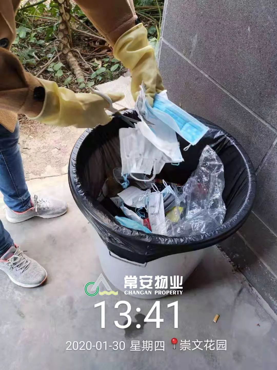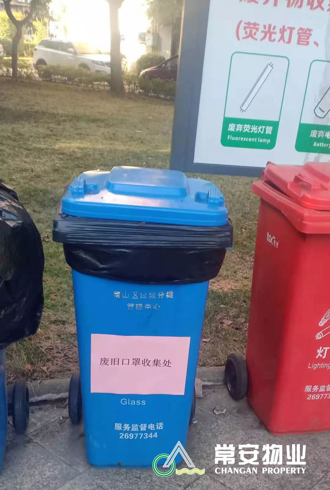 在小區(qū)內(nèi)設(shè)置口罩、手套等專用垃圾桶,要求業(yè)主、住戶將已失效的防護用品必須銷毀,做到特殊垃圾、特殊處理。