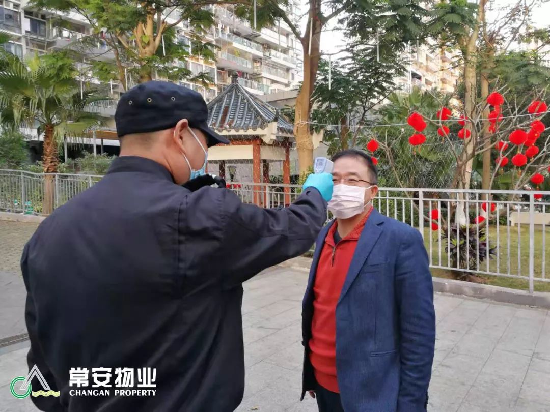 統(tǒng)計返深人員的信息(包括服務(wù)中心的員工)及外來流動人員情況,做好體溫測量和記錄。截止2020年1月30日,我司共計采購紅外體溫儀器70余套,對在管項目業(yè)主/住戶、外來人員和值班人員共計測量體溫五千余次。確保常安物業(yè)管理區(qū)域業(yè)主及公司員工生命安全”