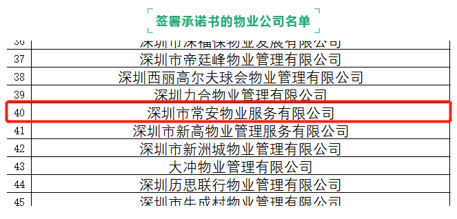 2020年9月17日,深圳市消委會、深圳市住房和建設局、深圳市物業(yè)管理行業(yè)協(xié)會召開深圳市物業(yè)服務行業(yè)監(jiān)督暨自律公約新聞發(fā)布會,發(fā)布了加入《深圳市物業(yè)服務行業(yè)自律公約》(以下簡稱《自律公約》)的407家物業(yè)服務企業(yè)名單,深圳市常安物業(yè)服務有限公司志愿簽署該公約,成為自律物業(yè)服務行業(yè)中的一員。