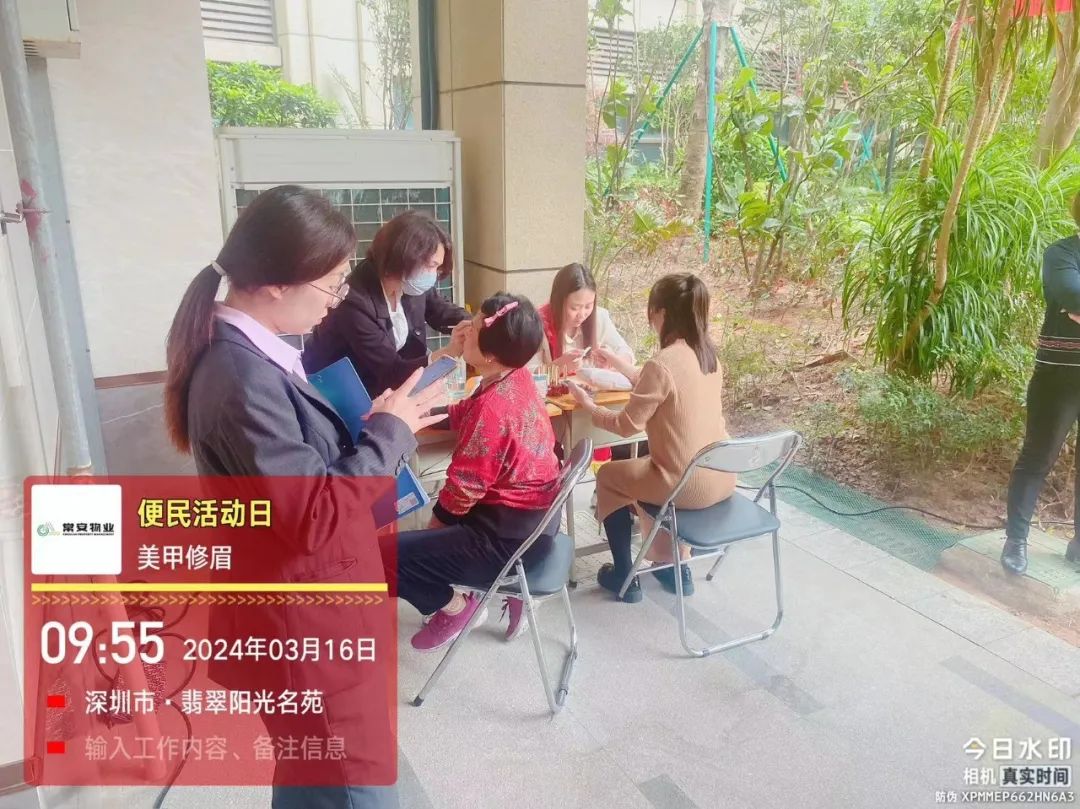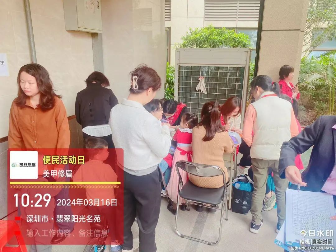 關(guān)注每一個細節(jié),為您的生活添彩!為方便本小區(qū)業(yè)主和住戶的居家生活,提升業(yè)主滿意度,提倡助人為樂,創(chuàng)建和諧小區(qū)。常安物業(yè)翡翠陽光名苑小區(qū)便民活動,在2024年3月16日(周六)上午09:30-12:30如期舉行:服務(wù)項目包括送水票、清洗服務(wù)、義剪、義診、美甲、修眉,獲得業(yè)主一致好評。